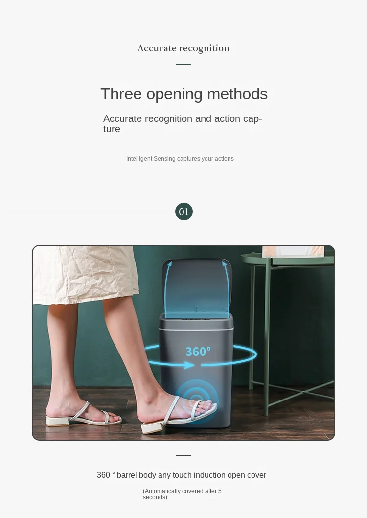 - Smart Trash Can Automatic Sensor Dustbin Electric Waste Bin Waterproof Wastebasket For Kitchen Bathroom Recycling Trash